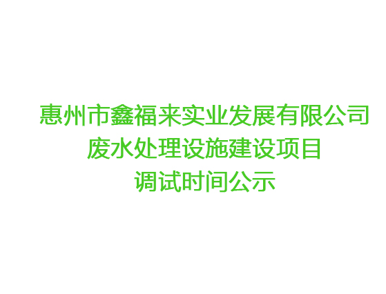 惠州市鑫福來實業發(fā)展有限公司 廢水處理設施建設項目調試時間公示