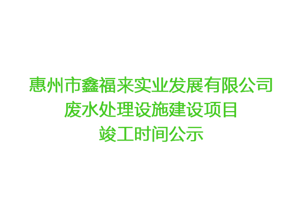 惠州市鑫福來實業發(fā)展有限公司 廢水處理設施建設項目竣工時間公示