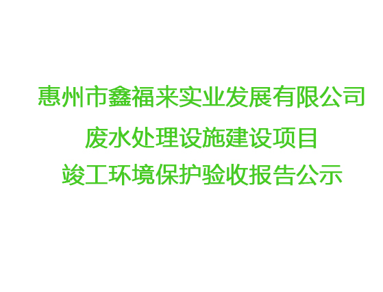 惠州市鑫福來實業發(fā)展有限公司廢水處理設施竣工環(huán)境保護驗收報告公示